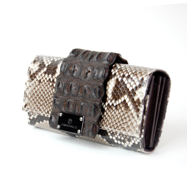 パイソンとクロコダイルの組み合わせ。BAGとお揃いで持ってもいい感じ。