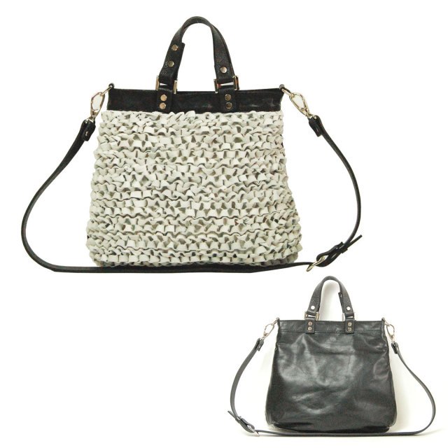ひとつのBAGで色んな表情が楽しめるAgathe(アガタ)。革の裏と表がランダムに見える手編みはその表情を楽しんで下さい。