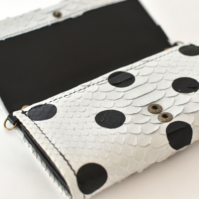 サイズ:W20cm・H11cm・D4cm重量:240g素材:パイソンレザー・内側:牛革仕様:小銭入れ×1 内側カード入れ×18・お札入れ×1